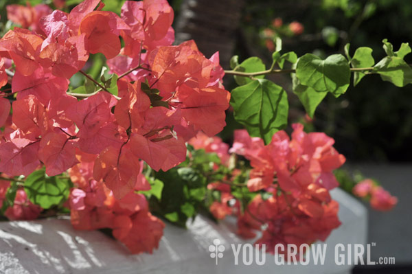 We saw three colours of bougainvillea today: pink, apricot, and white. Who knows what we will see tomorrow.