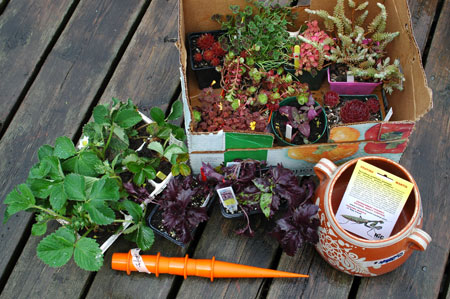 I grew this potato variety, ‘Purple Peruvian’ in a big trash can out on the roof last year. Unfortunately, you’ll have to wait until spring 2010 to see a picture of that… or read about it for that matter. Anybookpublishingtakestoolong, it’s a pretty little fingerling variety with purple flowers that grows well in containers. I …