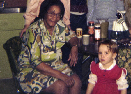 This is the only photo I have of my grandmother and I together. I don’t know where it was taken or why there is a black nanny doll in the background. Ugh. I think I am somewhere between 3 and 4 years old here. That would make Scylla approximately 65.