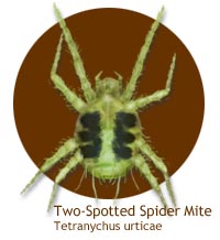 Spider mites, also known as two-spotted mites, become a particular problem for the gardener through the winter. Normally, they hibernate in ground litter or under the bark of trees or shrubs. However, if they stowaway onto a plant being brought indoors, the artificial lights, and warm, dry, conditions of most heated homes will allow them to keep infecting plants.