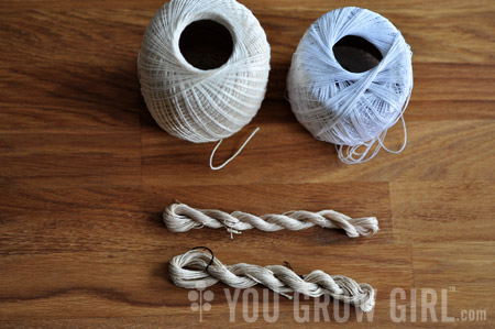 How To: All I did was soak the threads for an hour in water to prepare them to accept the colour. I then added 1 part used coffee grounds to 2 parts water and simmered it in a stainless steel pot along with the thread for about 30 minutes. I then turned off the heat and let them soak for a further 24 hours. The next morning I rinsed the threads thoroughly in lukewarm water and hung to dry.